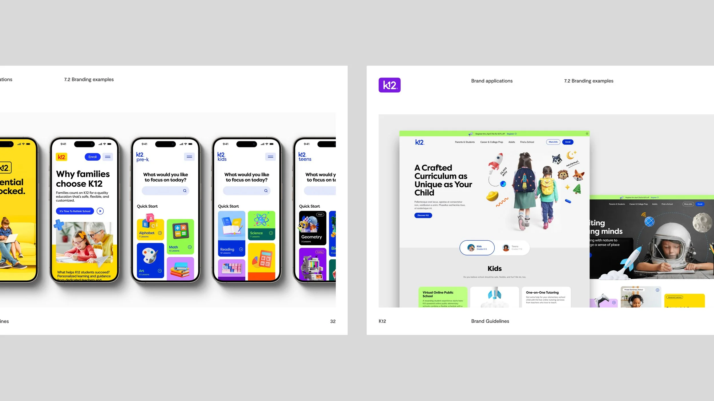 K12, a portfolio brand of Stride, Inc., has been a pioneer in online public education for over 25 years — serving more than 3 million students and helping redefine what personalized learning looks like at scale. K12 needed a brand identity as dynamic as the learners it serves. Our rebrand centered on four core pillars — vibrancy, inventiveness, care, and empowerment — to create a visual system that speaks equally to teachers, parents, and students. The result: a cohesive identity built on the belief that the best learning experiences feel both personal and trustworthy.